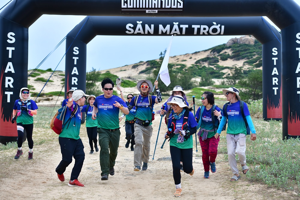 Hành trình “VPBank Commandos Ultra 2022 – Hành trình “Săn mặt trời” bắt đầu từ Đầm Môn, nơi có bán đảo Hòn Gốm với những dải cát trắng lấp lánh dưới ánh nắng mùa hạ. Thử thách đầu tiên trên hành trình của các “Chiến binh áo xanh” là băng qua sa mạc cát nóng bỏng để đến được Hòn Kỳ Lân. Đối với dân văn phòng vốn quen với đô thị và môi trường công sở, trải nghiệm giữa một vùng cát hoang sơ này thật sự khác biệt.