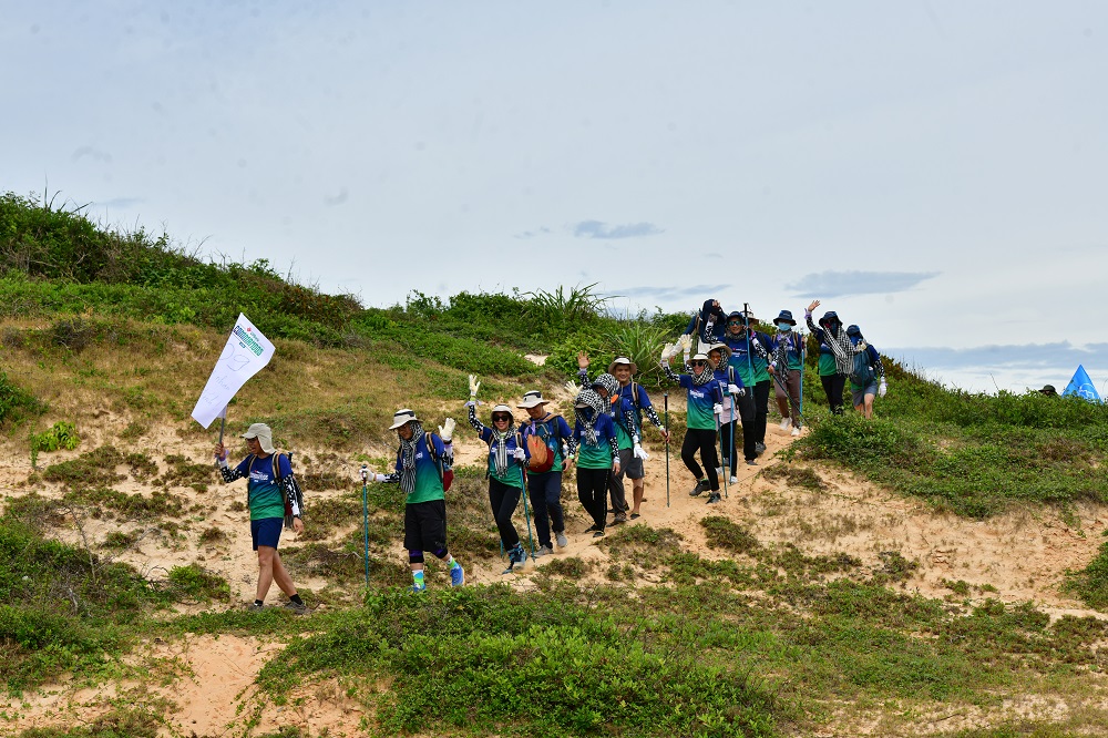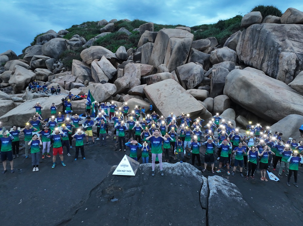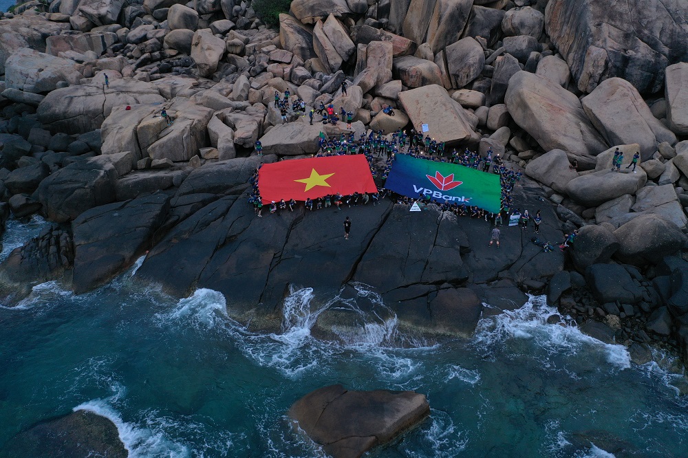 Đây là đoạn đường vô cùng thách thức khi phải trekking qua những mỏm đá lởm chởm, trơn trượt. Bất chấp quãng đường khó, các nhân viên VPBank vẫn tươi tắn, giữ được nhiệt huyết, duy trì tốc độ trong từng bước chân với quyết tâm đón ánh bình mình đầu tiên trên đất liền của Tổ quốc.
