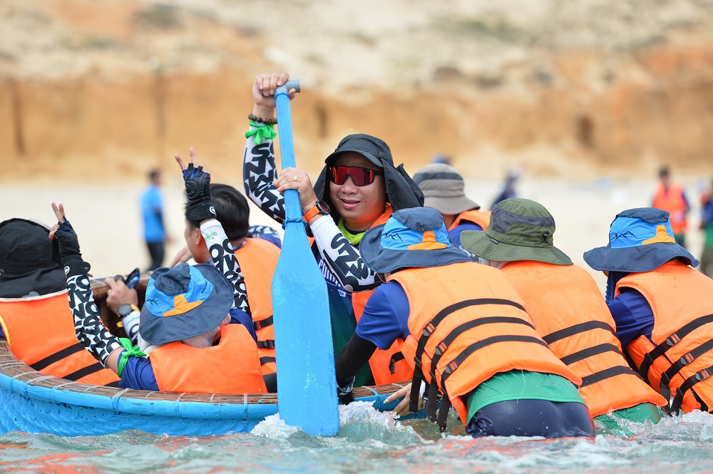 Thử thách thứ 2 trên hành trình mà các VPBanker phải vượt qua cũng vô cùng mới lạ và khó nhằn. Đó là đua thuyền thúng trên bãi biển có tên Chú Năm. Đây là bãi biển nước trong và đẹp nhất trên bán đảo Hòn Gốm.