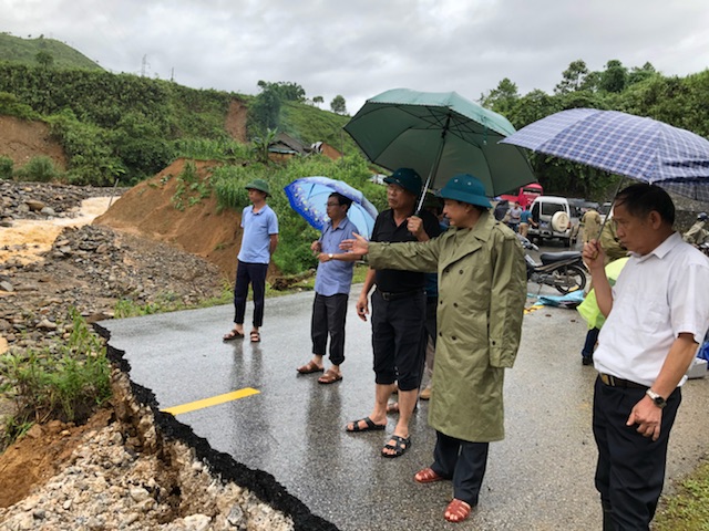 Đoàn công tác tiếp tục di chuyển đến các địa bàn khác trong tỉnh đang xảy ra tình trạng sạt lở đất và lũ quyét nguy hiểm trên địa bàn tỉnh để kịp thời chỉ đạo, điều hành công tác ứng phó.