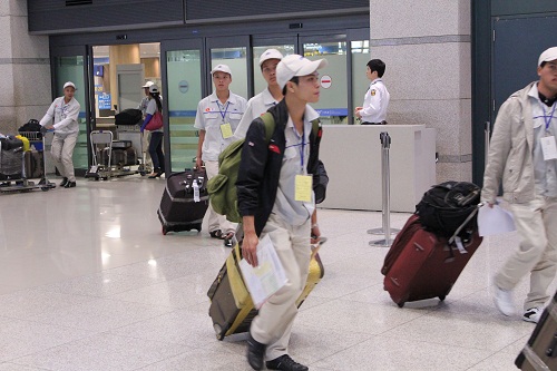 | Lao động theo chương trình EPS nhập cảnh tại Sân bay Inchoen, Hàn Quốc |