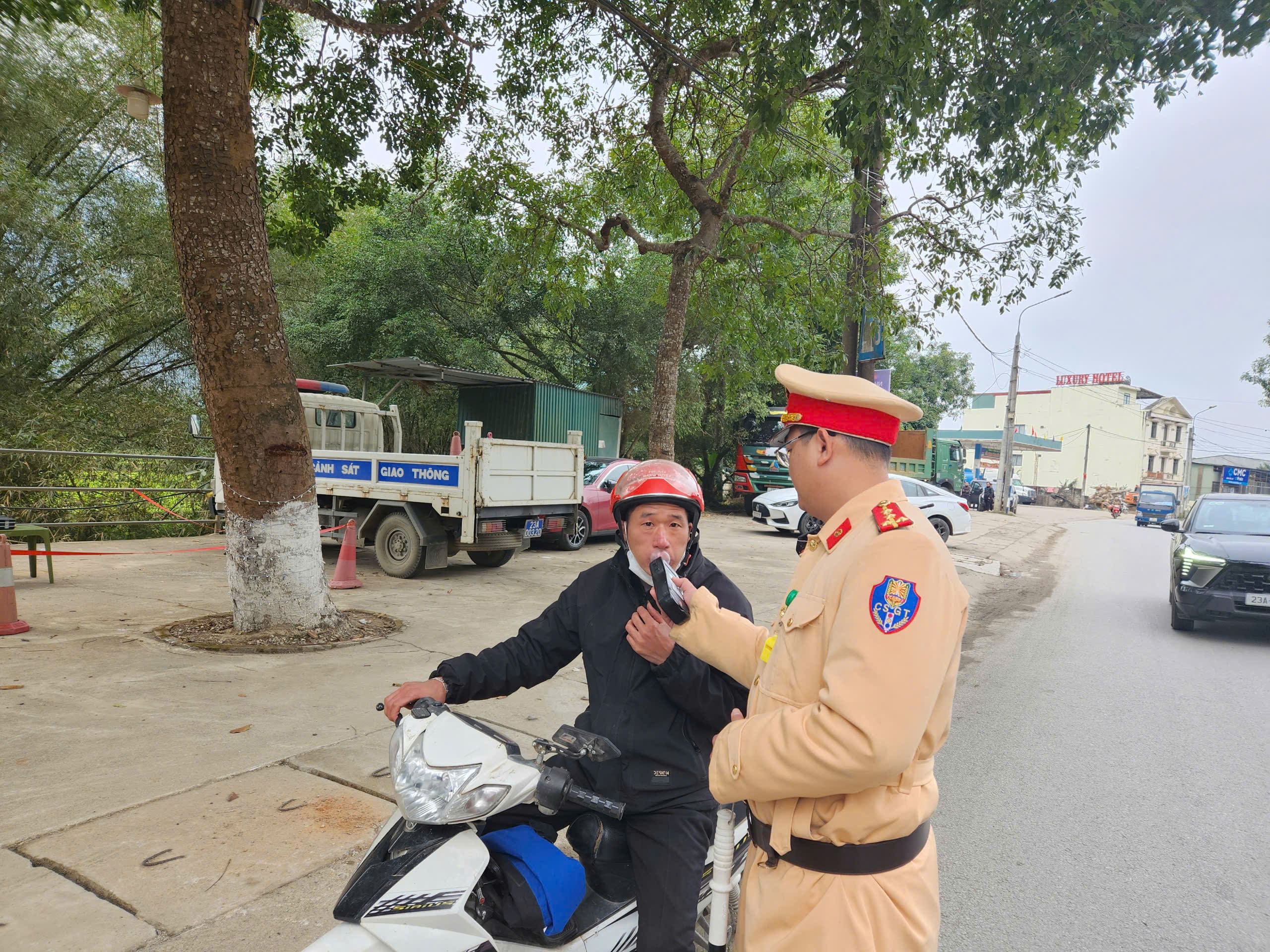 Ghi nhận của phóng viên Tạp chí Hòa Nhập (hoanhap.vn) trưa 9/2, Đội CSGT đường bộ, đường thủy (Phòng CSGT Công an tỉnh Hà Giang) triển khai tổ công tác kiểm soát vi phạm nồng độ cồn đối với người điều khiển phương tiện xe máy, ô tô và cả xe đạp tại Km57 + 500 quốc lộ 2 (xã Việt Vinh, huyện Bắc Quang, tỉnh Hà Giang).