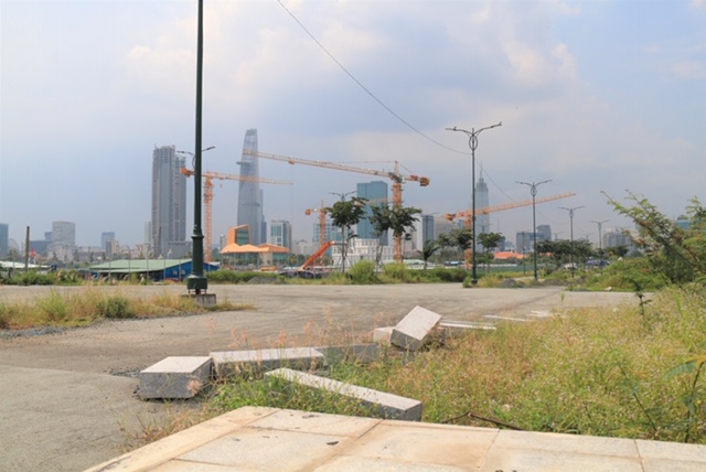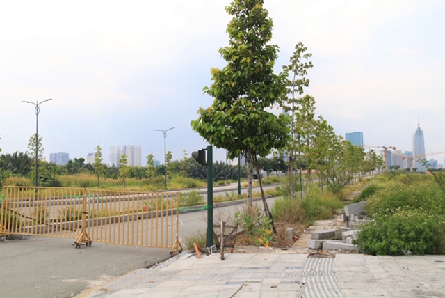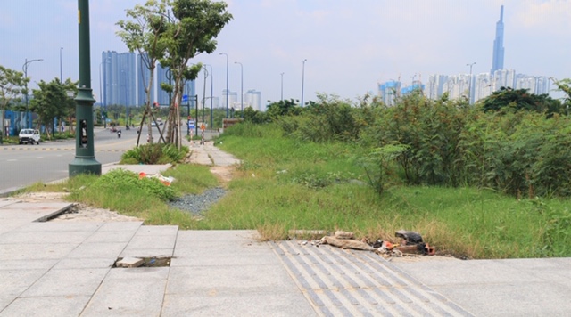 Sau 5 năm khởi công xây dựng, nhiều khu vực trên 4 tuyến đường “nghìn tỷ” ở Thủ Thiêm vẫn chưa xây dựng xong, nhiều nơi để vật liệu xây dựng ngổn ngang, rác thải khắp nơi bởi những người kinh doanh trên khu vực vỉa hè tại đây.