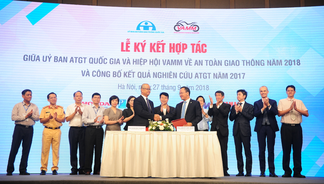 Trong khuôn khổ buổi lễ, Uỷ ban ATGT Quốc gia đã tổ chức kí kết hợp tác với Hiệp hội các nhà sản xuất xe máy Việt Nam (VAMM) trong các hoạt động bảo đảm trật tự, an toàn giao thông và trong công tác xã hội hỗ trợ, chia sẻ với các nạn nhân TNGT.