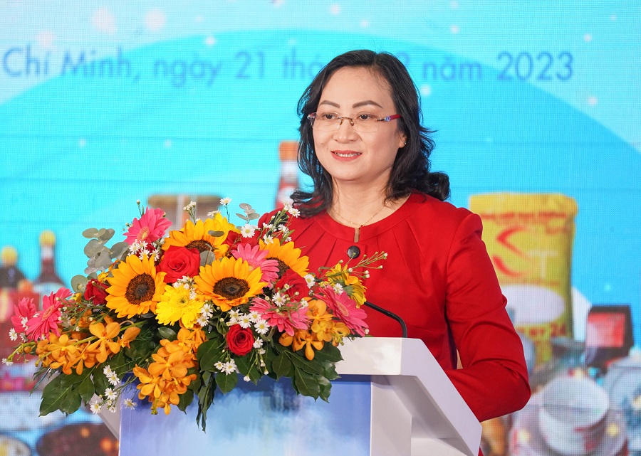Thứ trưởng Bộ Công Thương Phan Thị Thắng biểu dương và đánh giá cao vai trò của TP Hồ Chí Minh trong việc liên kết với các tỉnh, thành phố trong cả nước tạo điều kiện thuận lợi để tiêu thụ hàng hoá và tăng trưởng bán lẻ hàng hóa