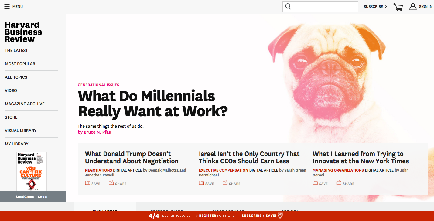 HBR.com là website tốt nhất cho bạn. Các series video chia sẻ nhanh, các bài viết kinh nghiệm về mọi chủ đề từ Quản trị bản thân cho tới các Chiến lược dài hạn. Với đặc tính là " Clear and straight-to-the-point ", Hãy dành 15 phút mỗi ngày để đọc HBR sẽ tốt hơn!