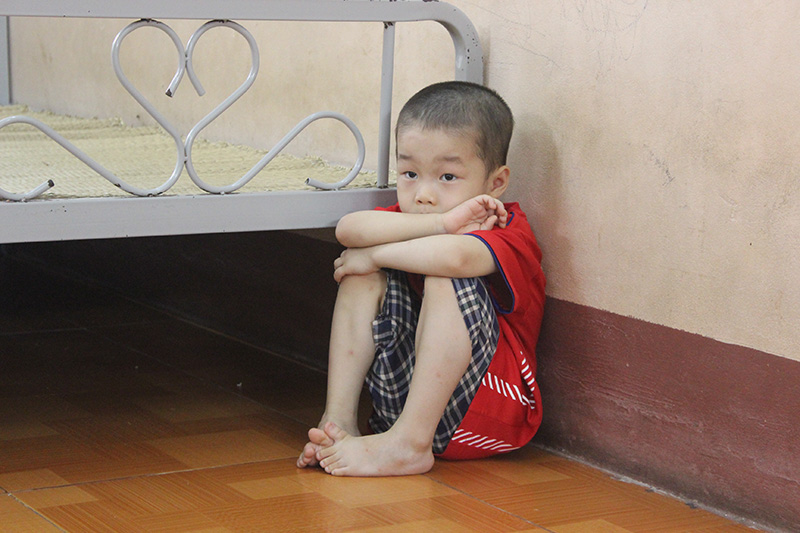 Bé Nguyễn Tiến Hòa luôn thu mình, ít khi nô đùa với bạn bè