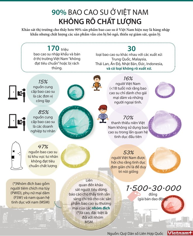 Khảo sát thị trường cho thấy hơn 90% sản phẩm bao cao su ở Việt Nam hiện nay là hàng nhập khẩu nhưng chất lượng các sản phẩm vẫn còn bị bỏ ngỏ, thiếu sự giám sát, quản lý./.