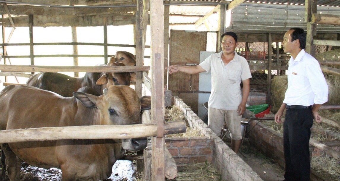 Cán bộ tín dụng Agribank Đắk Lắk kiểm tra nguồn vốn đầu tư phát triển chăn nuôi tại huyện Krông Năng