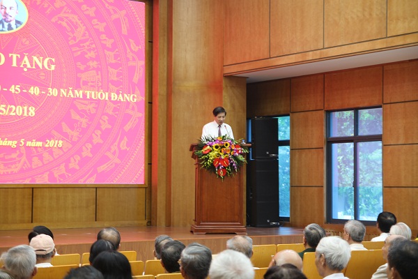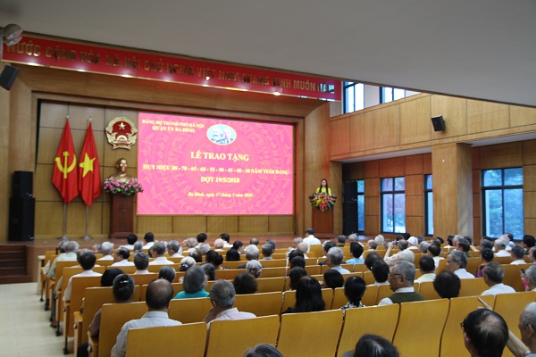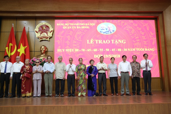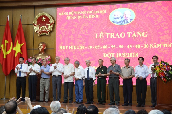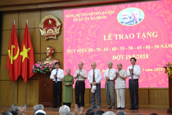 Đồng thời Ông cũng khẳng định Đảng bộ quận Ba Đình luôn tự hào về lớp cán bộ Đảng viên. Niềm vinh dự mà các bác được nhận hôm nay cũng là niềm vinh dự, niềm vui chung của Đảng bộ nhân dân quận Ba Đình và của các tổ chức Đảng. Ban thường vụ quận ủy Ba Đình xin bày tỏ niềm biết ơn sâu sắc đối với công lao to lớn của các thế hệ cán bộ Đảng viên đi trước, xin trân trọng ghi nhận những đóng góp quan trọng của các đồng chí Đảng viên được nhận huy hiệu Đảng hôm nay.