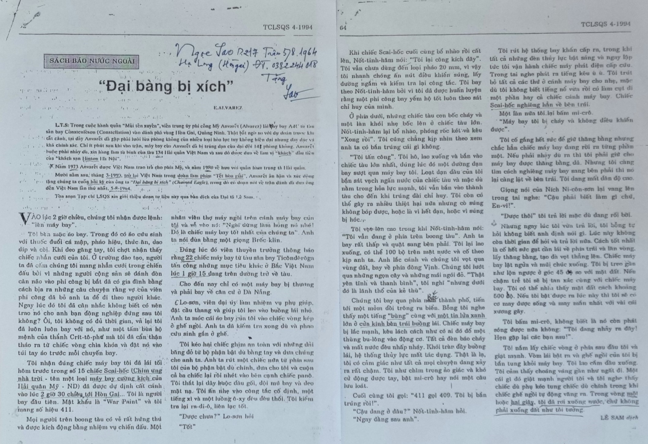 Đoạn hồi ký của Alvaretez, do Đại tá Lê Sam (nguyên Chính ủy Trung đoàn 217) khi ở Tổng cục Chính trị đã dịch ra tiếng Việt.