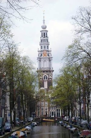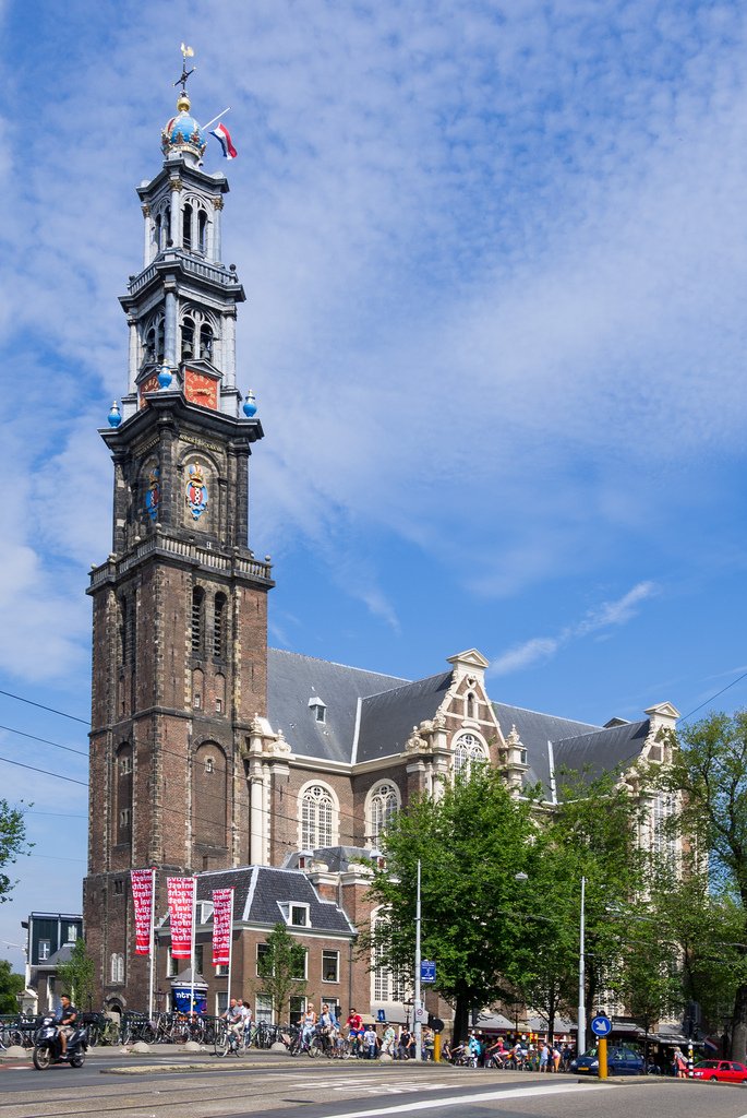 Ngọn tháp cao 85m của nhà thờ phía Tây xây dựng vào thế kỷ XVII được coi là một kiệt tác của kiến trúc nhà thờ mang phong cách Gothic Châu Âu. Đây còn là vị trí rất đẹp ở phía tây thành phố, nằm giữa hai con kênh nổi tiếng là kênh Hoàng Đế và kênh Hoàng Tử, chúng ta có thể ngắm nhìn vẻ đẹp của nhà thờ từ mọi góc nhìn nhất là nó có một vẻ đẹp hoàn hảo khi đứng cạnh dòng kênh Hoàng Tử. Nét đặc sắc nhất của công trình là đỉnh cao của tháp được kết thúc bằng một “mũ niệm” có màu sắc rực rỡ, rất dễ phân biệt với các tháp nhà thờ khác.