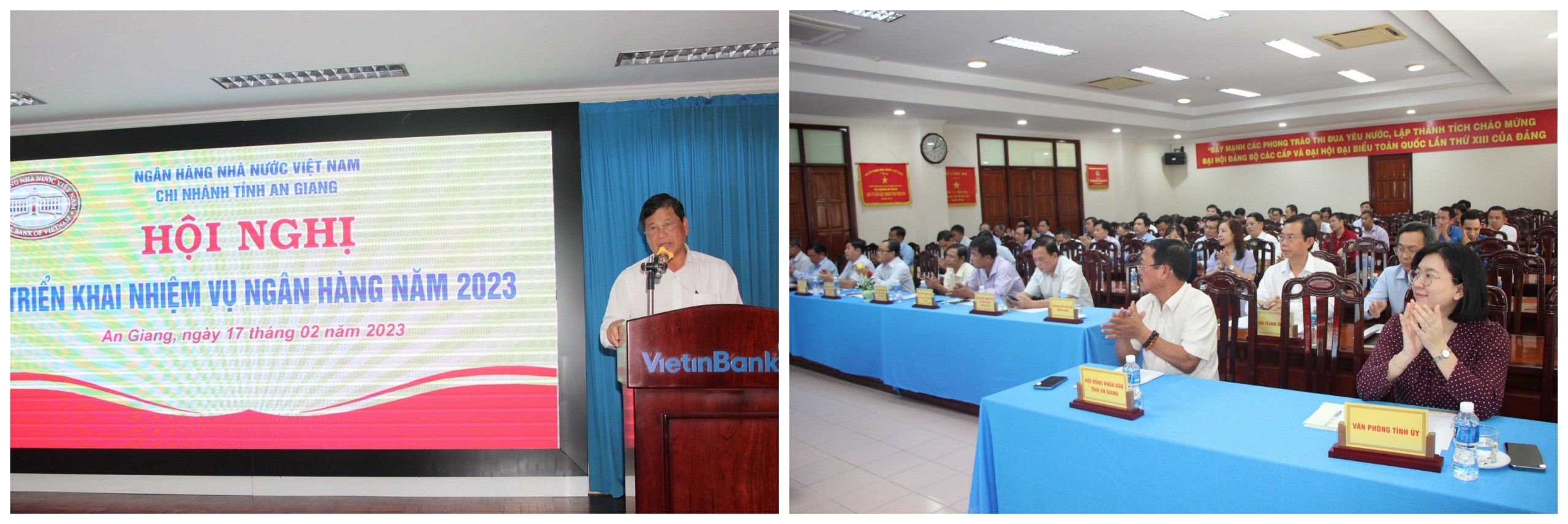 Hai là, hệ thống ngân hàng An Giang tiếp tục tổ chức triển khai thực hiện tốt các cơ chế chính sách về tiền tệ, tín dụng và ngân hàng của NHTW trong năm 2023. Đồng thời thực hiện tốt chức năng quản lý nhà nước về tiền tệ tín dụng và ngân hàng trên địa bàn nhằm đảm bảo giữ ổn định thị trường tiền tệ và hoạt động ngân hàng, giữ ổn định lãi suất, tỷ giá theo định hướng điều hành của NHTW nhằm tạo môi trường đầu tư kinh doanh thuận lợi cũng như tiếp tục củng cố và tạo lập niềm tin của doanh nghiệp, người dân đối với hoạt động ngân hàng.