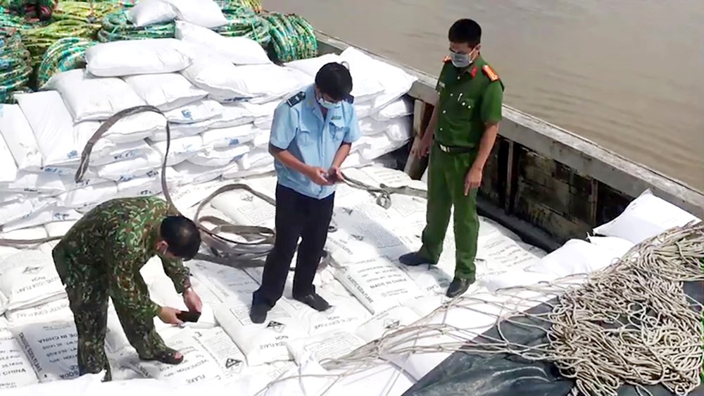 Đơn cử vào lúc 7h, ngày 18/11/2021, Tổ công tác liên ngành chống buôn lậu tỉnh An Giang phối hợp Đồn Biên phòng Phú Hữu tuần tra kiểm soát đến khu vực thủy phận ấp Thạnh Phú, xã Khánh An, huyện An Phú, tỉnh An Giang phát hiện ghe gỗ AG - 189.61 đang neo đậu tại bến hàng hóa Lý Lời. Qua kiểm tra phát hiện ghe gỗ nói trên do bà Đỗ Thị Thơ, sinh năm: 1970, cư trú ấp Thạnh Phú, xã Khánh An, huyên An Phú, tỉnh An Giang làm chủ, phát hiện 2.480 bao nghi hóa chất, bột đá loại 25kg/bao; 21 phy nhựa bên trong chứa 4.620 lít nghi hóa chất. Ông Nguyễn Văn Pha, sinh năm: 1975, cư trú ấp Thạnh Phú, xã Khánh An, huyện An Phú, tỉnh An Giang nhận là chủ số hàng hóa nói trên nhưng không xuất trình được hóa đơn chứng từ, chứng minh số hàng hóa nói trên. Trị giá tang vật khoảng 2,6 tỷ đồng. Vụ việc giao Công an huyện An Phú xử lý theo quy định.