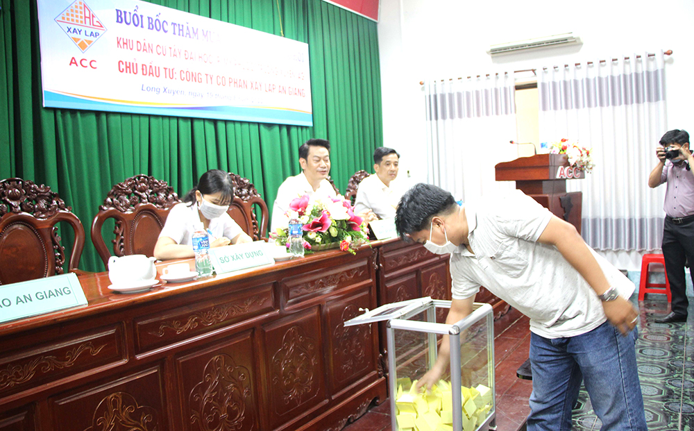 Người dân bốc thăm mua nhà ở xã hội Khu dân cư Tây Đại học ACC. Ảnh Trọng Triết