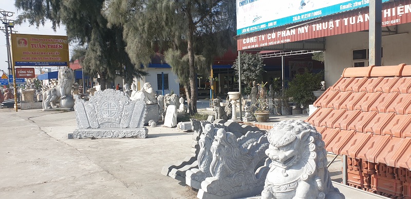 Các cơ sở chế tác đá tại An Tiến nằm ngay trục Quốc lộ 10.