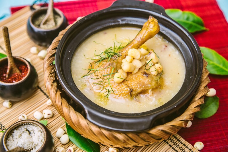 Về món ăn, nhà hàng sở hữu menu hết sức đa dạng với 16 loại cháo từ hương vị truyền thống như cháo rau, cháo đậu xanh, đến các loại cháo chế biến cầu kỳ hơn như cháo chim bồ câu, cháo móng giò bí ngô, cháo bào ngư,…