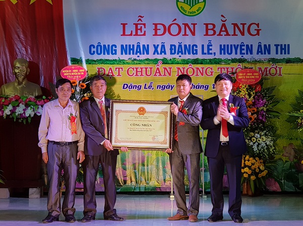 | Xã Đặng Lễ, huyện Ân Thi đón bằng công nhận đạt chuẩn nông thôn mới |