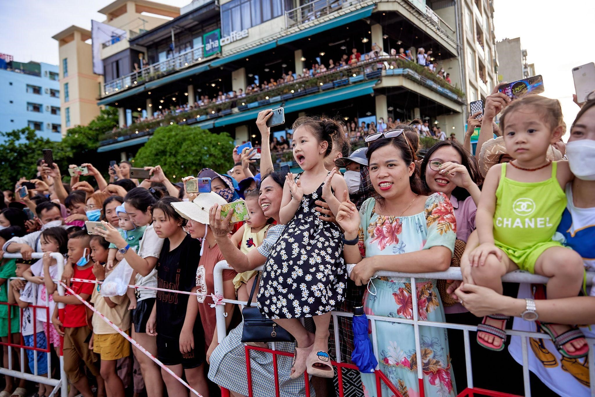 Du khách hào hứng đứng chật kín đường, thậm chí đi sau theo đoàn diễu hành suốt dọc tuyến đường và không quên ghi lại những hình ảnh đáng nhớ, ấn tượng của Lễ hội Carnival.