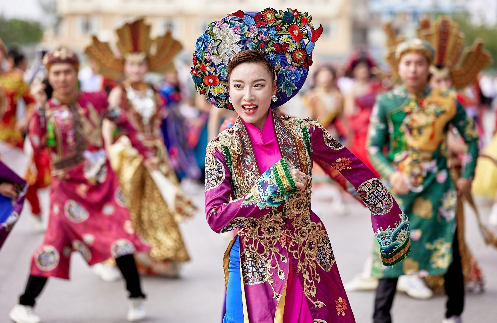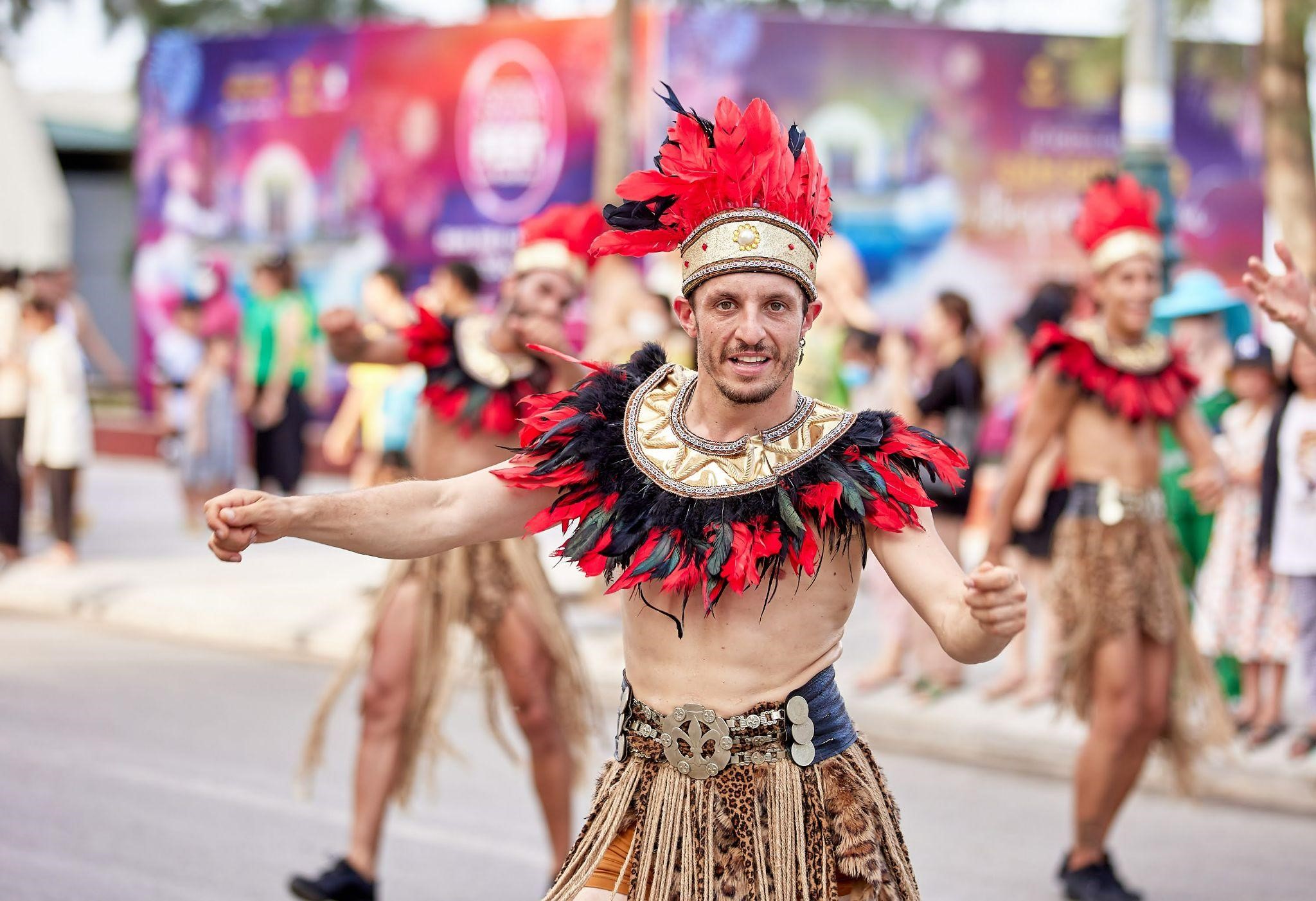 Điểm nhấn của lễ hội đến từ những trang phục được thiết kế cầu kỳ và rực rỡ nhằm “thổi” luồng không khí lễ hội đặc sắc tới du khách.