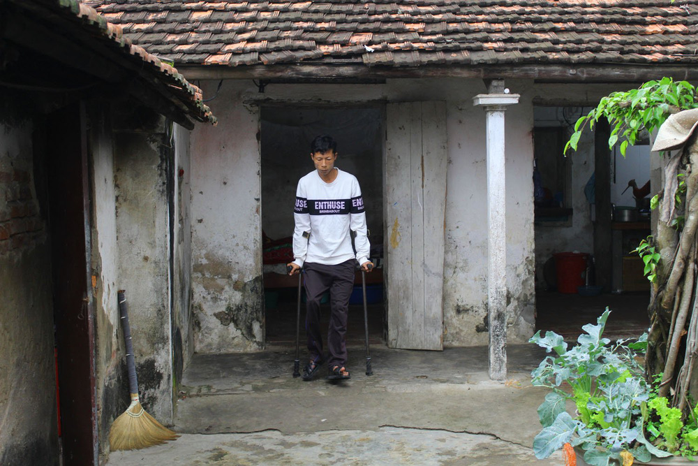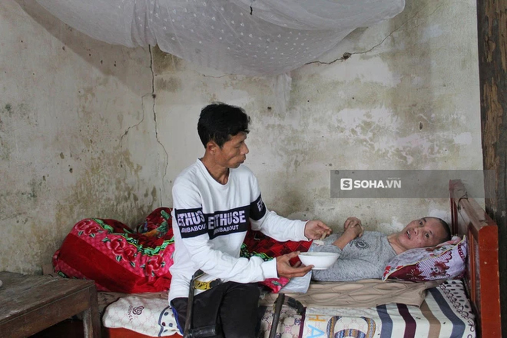 Anh Vui liệt nửa người bên trái, mức độ IV, rối loạn cơ tròn; có nhận thức được xung quanh, cảm nhận đau, khó chịu. Bác sĩ cho biết, anh Vui không có nhiều hy vọng bình phục. Bởi vậy, gia đình đành phải đưa anh về quê nhà Thanh Hóa chăm sóc. Được biết, anh Vui có vợ và một con trai hiện đã 3 tuổi ở Đồng Nai, nhưng từ khi chuyển anh về Thanh Hóa thì vợ con anh cũng không liên lạc. Hiện tại, mọi sinh hoạt ăn uống, vệ sinh của anh Vui đều diễn ra tại chỗ. Tất cả mọi việc lại do một tay chị dâu Lê Thị Tiến (vợ anh Bình) chăm sóc.