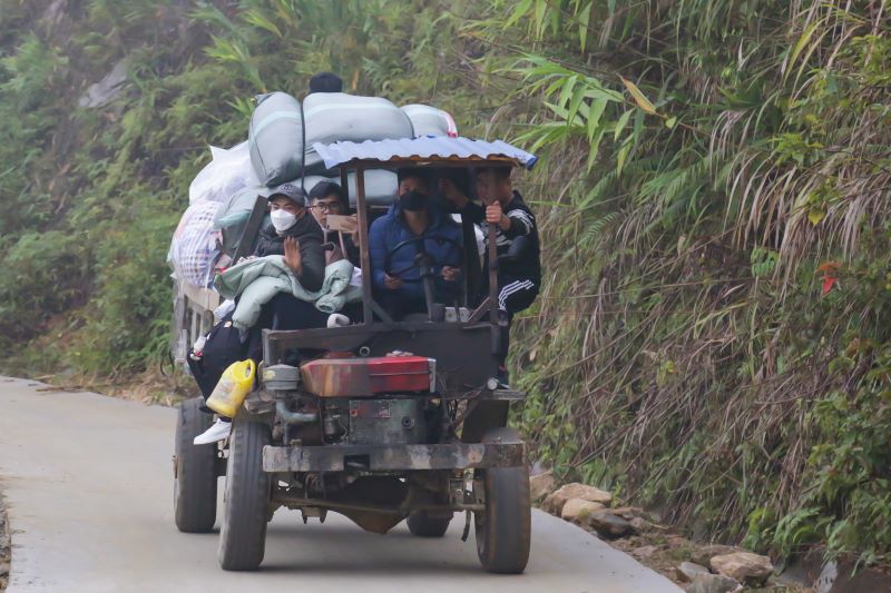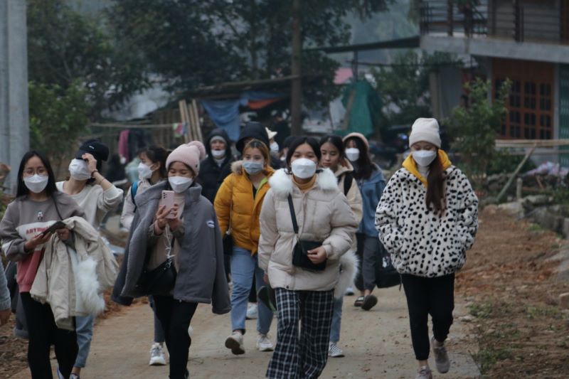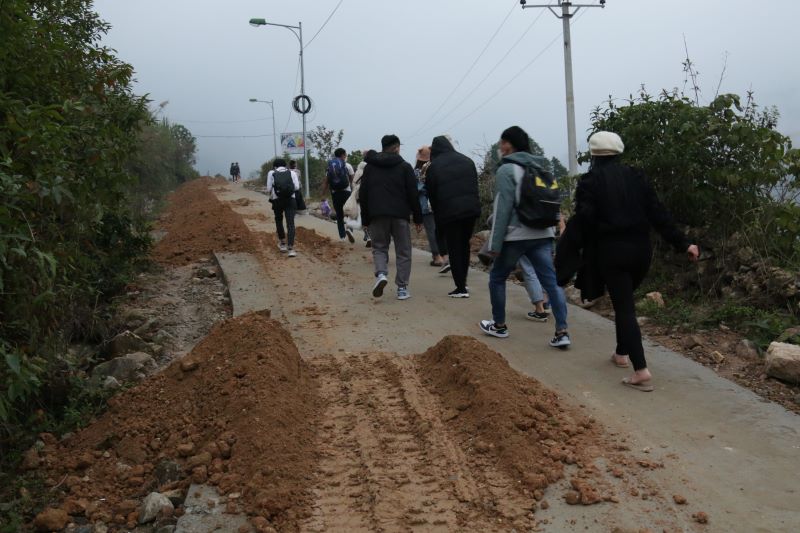 Các bạn Tình nguyện viên đi bộ gần 1 tiếng đường núi để đến với điểm trường mần non Ma Quái Hồ (thôn Ma Quái Hồ, xã Bản Hồ, thị xã SaPa, tỉnh Lào Cai).
