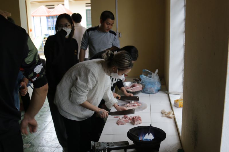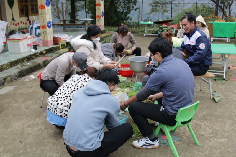 Các thành viên câu lạc bộ chuẩn bị bữa trưa với điểm trường.