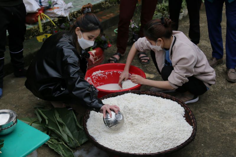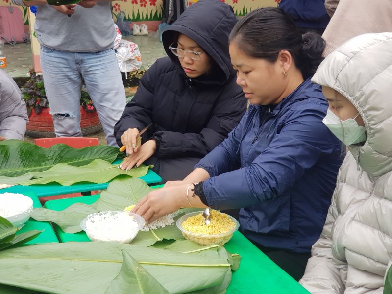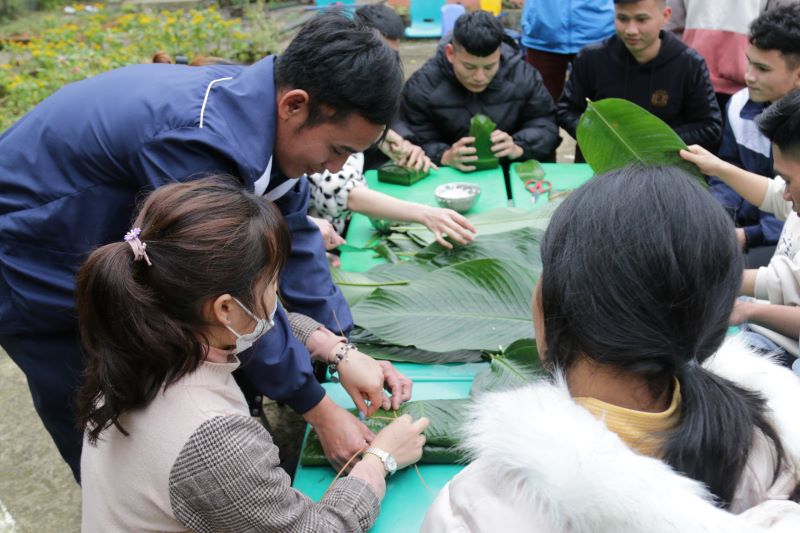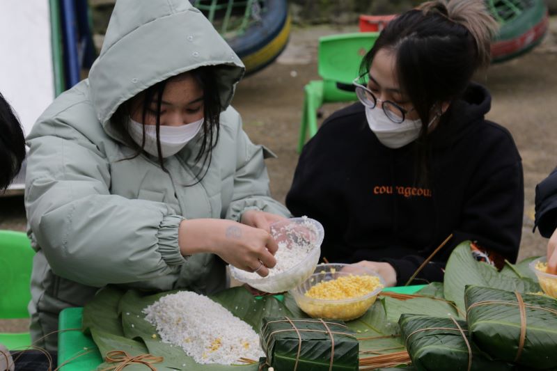 Các thành viên, tình nguyện viên gói bánh chưng tặng các em nhỏ tại thôn Ma Quái Hồ. Nụ cười rạng rỡ của các TNV bên thành quả của mình. Những chiếc bánh chưng tự tay các bạn làm gửi gắm vào đó là Tình cảm của các anh chị gửi đến các em nhỏ nơi đây..