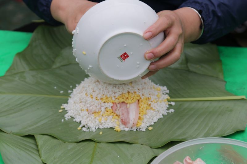 Ngâm gạo và chuẩn bị đồ để gói bánh chưng
