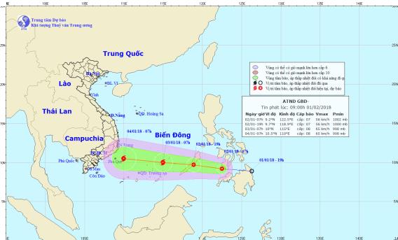 Dự báo trong 12 giờ tới, áp thấp nhiệt đới di chuyển nhanh theo hướng Tây, mỗi giờ đi được khoảng 30-35km. Đến 19 giờ ngày 02/01, vị trí tâm áp thấp nhiệt đới ở vào khoảng 9,7 độ Vĩ Bắc; 118,9 Kinh Đông, trên khu vực miền Trung Pa-la-oan (Phi-líp-pin). Sức gió mạnh nhất ở vùng gần tâm áp thấp nhiệt đới mạnh cấp 7 (50-60km/giờ), giật cấp 9.