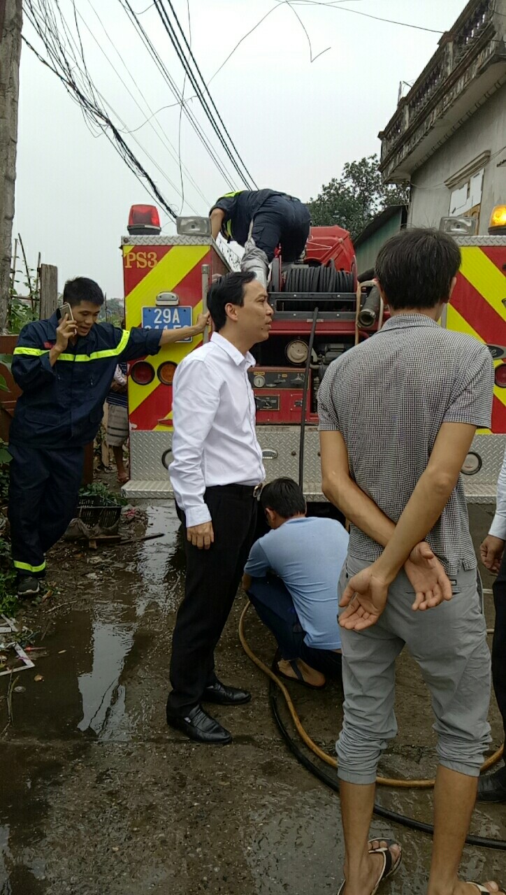 | Ngay sau khi nhận được tin báo, Chủ tịch phường Đại Mỗ (áo trắng) đã có mặt để chỉ đạo công tác chữa cháy |