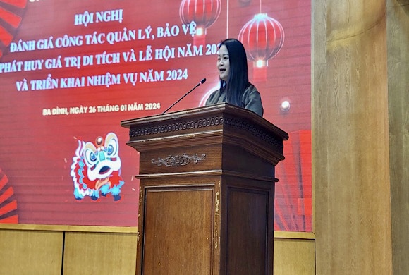 Bà Phạm Thị Diễm, Phó Chủ tịch UBND quận Ba Đình chia sẻ vấn đề phát huy các giá trị di sản văn hóa di tích