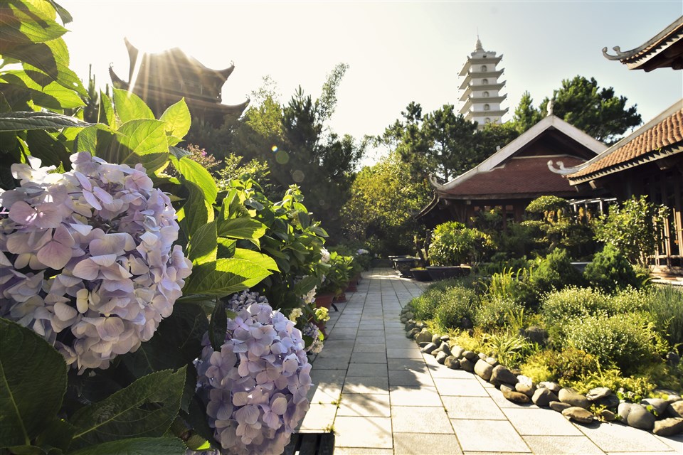 Nnằm nép mình giữa không gian xanh yên bình và những khóm hoa tô điểm khắp chốn, khu tâm linh trên đỉnh Bà Nà đẹp một cách nao lòng.
