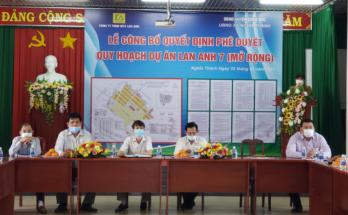 Sau quá trình chủ đầu tư hoàn tất các thủ tục đầu tư, pháp lý và được chính quyền các cấp phê duyệt, ngày 2/2 tại UBND xã Nghĩa Thành, huyện Châu Đức, tỉnh Bà Rịa- Vũng Tàu, công ty TNHH MTV Lan Anh đã chính thức công bố Quyết định Phê duyệt Quy hoạch chi tiết xây dựng tỉ lệ 1/500 Khu dân cư Lan Anh 7 mở rộng. Buổi công bố có sự chứng kiến của đại diện Phòng Tài nguyên và Môi trường, Phòng kinh tế hạ tầng huyện Châu Đức, Đảng ủy – UBND xã Nghĩa Thành và nhiều người dân địa phương.