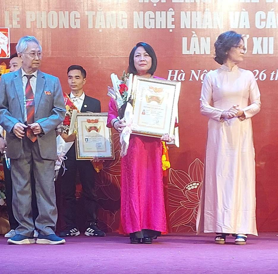 Nghệ nhân Triệu Thị Hoa, giám đốc Trung tâm dạy nghề Vaide cũng được xét trao tặng danh hiệu nghệ nhân đợt này.