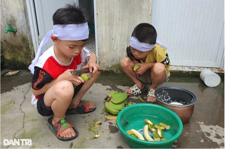 Đội vành khưn tang, người anh 8 tuổi còn ăn chưa no, lo chưa tới phải chăm em trai 6 tuổi.