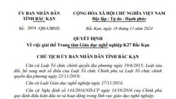 Quyết định số 2054/QĐ-UBND của UBND tỉnh Bắc Kạn