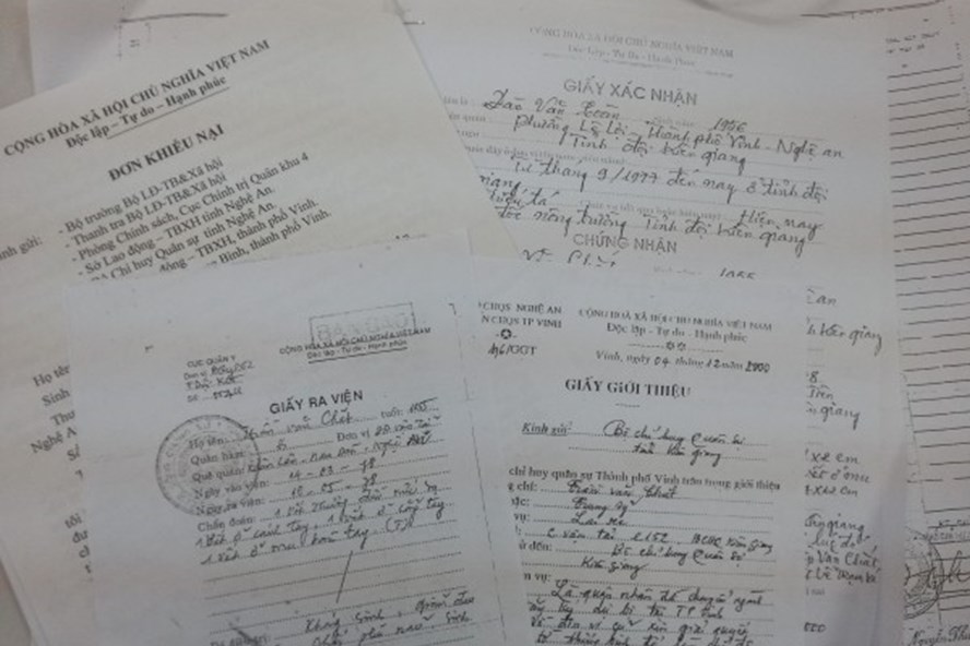 Hay như năm 2015, cơ quan Cảnh sát điều tra - Công an tỉnh Nghệ An đã khởi tố điều tra ông Đặng Hồng Tư (63 tuổi, ngụ khối Tân Thành 2, phường Lê Mao, TP Vinh, Nghệ An) về tội “Sửa chữa, sử dụng giấy chứng nhận và các tài liệu của cơ quan, tổ chức”. Khám nhà ông Tư, Công an Nghệ An đã thu giữ trên 70kg tài liệu với 60 loại tài liệu khác nhau. Các loại tài liệu này đều có dấu đỏ và các chữ ký của các cơ quan, đơn vị trong và ngoài quân đội. Thời điểm bị bắt giữ, ông Tư là TB hạng 1/4.