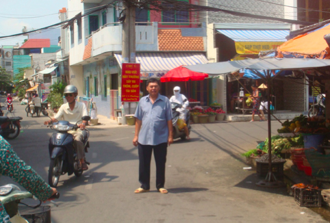 Thương binh ¼ Diệp Kim Long đứng trước căn nhà bị tháo dỡ trái pháp luật năm 1995 và khu đất 11.000m2 bị lấn chiếm