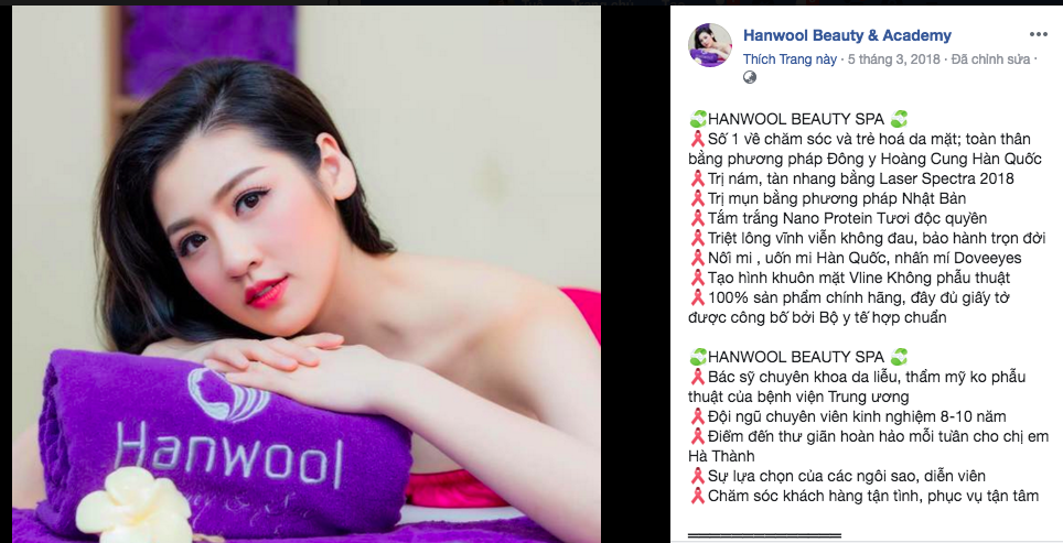 | Hanwool Beauty & Spa trơ trẽn quảng cáo có bác sĩ chuyên khoa, nhưng thực tế cơ sở chưa được cấp phép, liệu có đang lừa dối người tiêu dùng? |