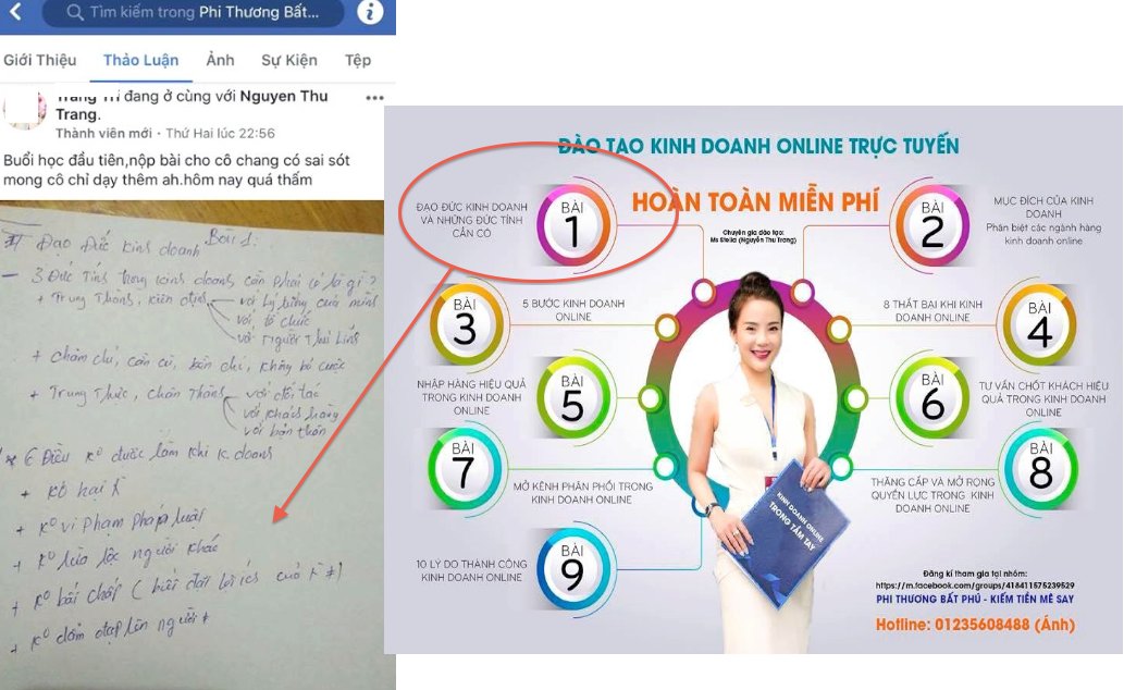Có lẽ những người làm kinh doanh sẽ thực sự sốc hơn khi biết chính Nguyễn Thu Trang là người vẫn tổ chức các buổi đào tạo online trong nhóm kín về kinh doanh online. Trong đó Bài 1 đã nói về Đạo đức kinh doanh và đức tính cần có, mỗi buổi học đều yêu cầu học viên ghi chép lại điều Nguyễn Thu Trang dạy, và đây là một trong số nhiều học viên đã ghi chép lại lời "vàng ý ngọc" của cô giáo Chang (tức Nguyễn Thu Trang) trong đó có tính