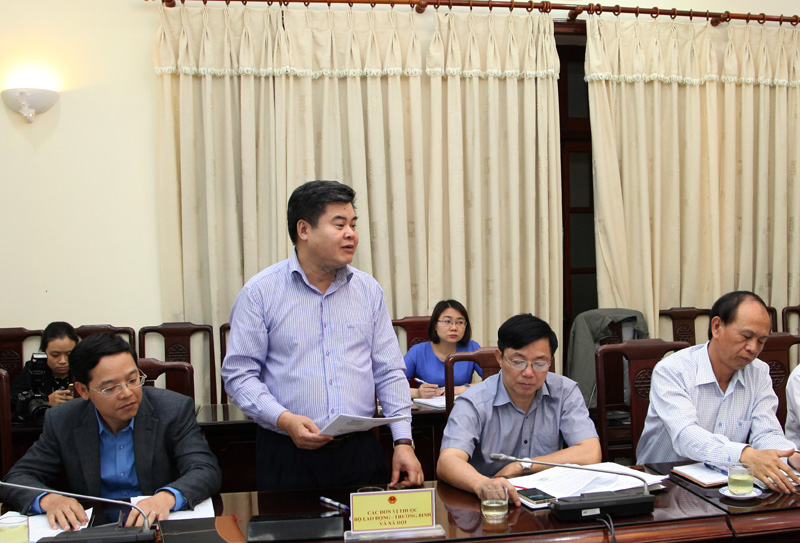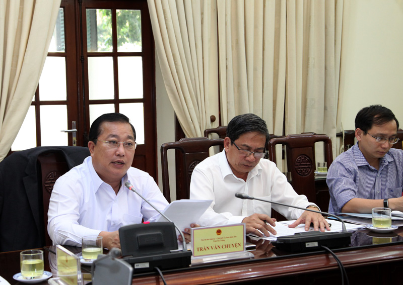 | Chủ tịch UBND tỉnh Trần Văn Chuyện báo cáo việc triển khai thực hiện nhiệm vụ lao động, người có công và xã hội trên địa bàn. |