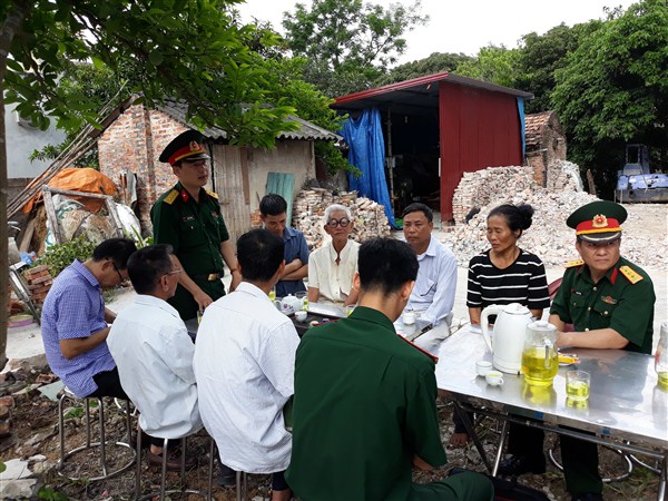 Đ/c Vũ Đình Tráng - Chính trị viên BCH Quân sự huyện trao tặng tiền cho gia đình xây dựng nhà tình nghĩa.