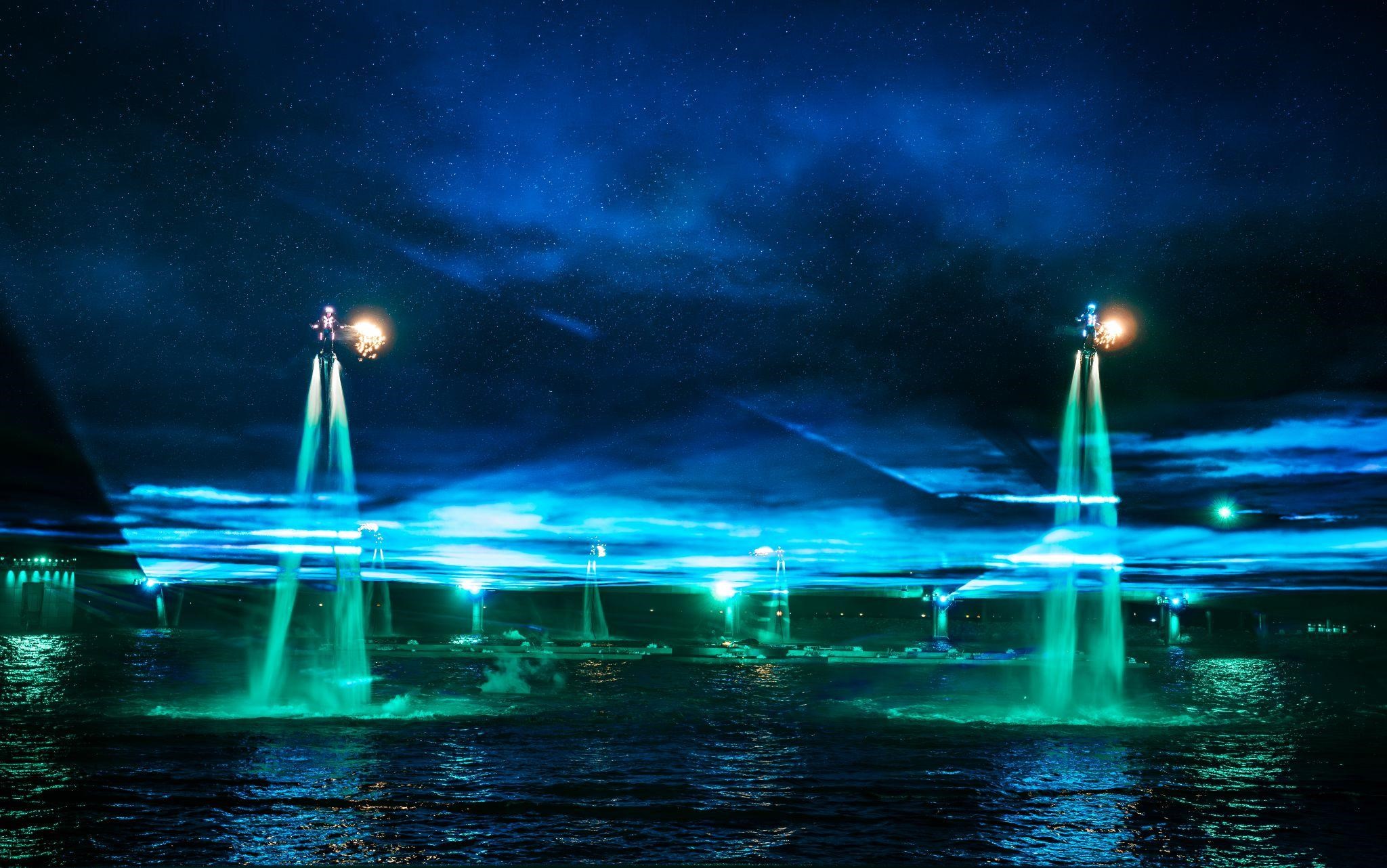 Đồng thời, toàn bộ không gian được “phù phép” bởi Laservision, thương hiệu trình diễn ánh sáng hàng đầu thế giới. Hàng trăm tia laser công suất lớn quét dọc theo mặt biển hòa cùng màn nước, khói và ánh sáng LED tạo ra hiệu ứng ba chiều sống động, khiến người xem có cảm giác như đang lạc vào giữa một vũ trụ ánh sáng khổng lồ.