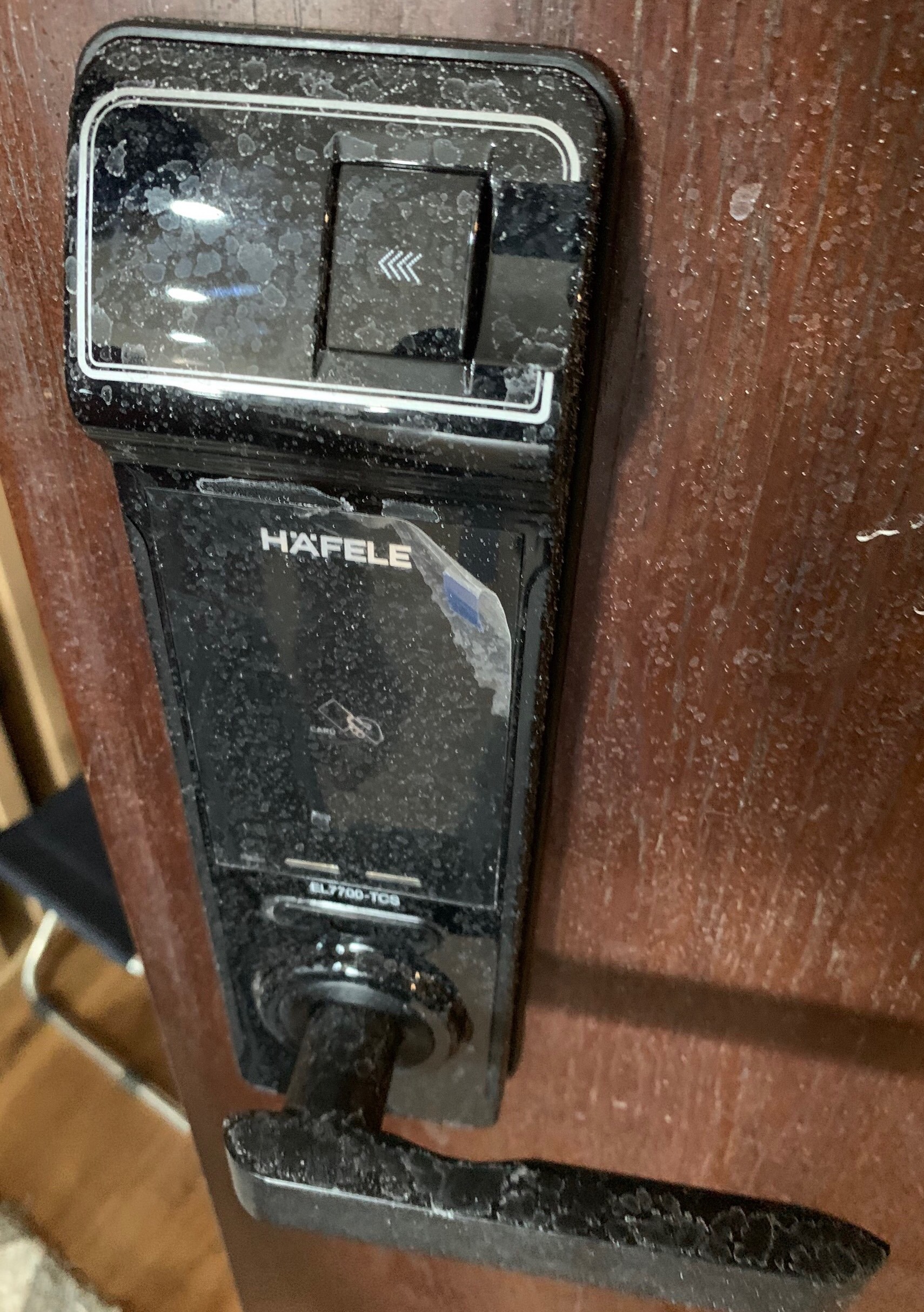 Lượng thuốc khử khuẩn đọng trên thiết bị trong nhà chung cư. (Ảnh người dân cung cấp).