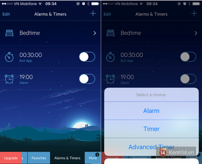 | Các bạn có thể hẹn giờ tắt ứng dụng để tiết kiệm pin. |