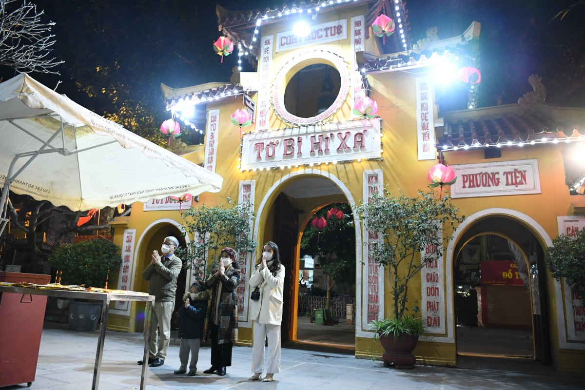 Thời khắc Giao thừa, người dân Thủ đô Hà Nội chọn cách đi chùa để tĩnh tâm, cầu một năm bình an. Hình ảnh trên được PV Văn Ngân ghi nhận tại chùa Quán Sứ. (ảnh VOV.VN).