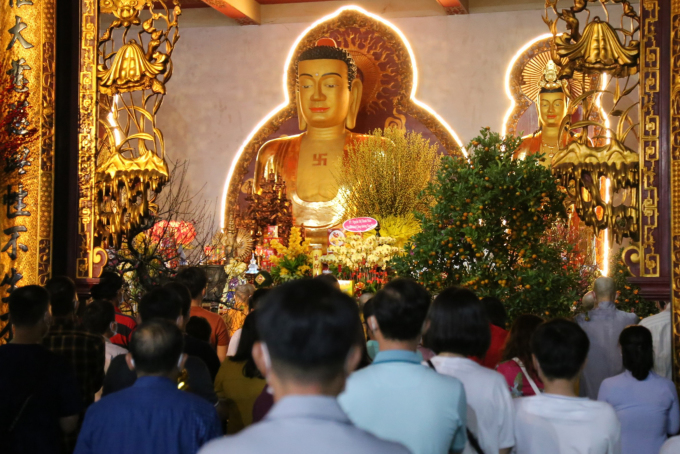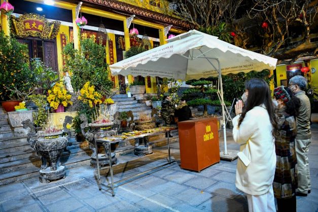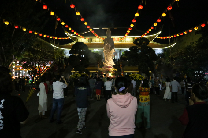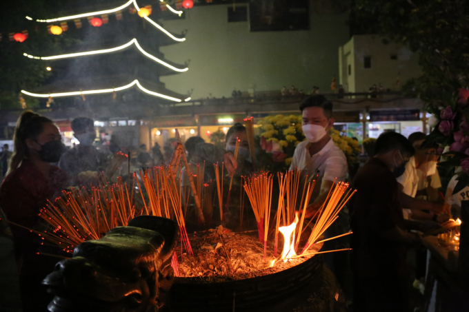 Người Sài Gòn tới chùa cầu nguyện trong thời khắc giao thừa (ảnh vnexpress.net).