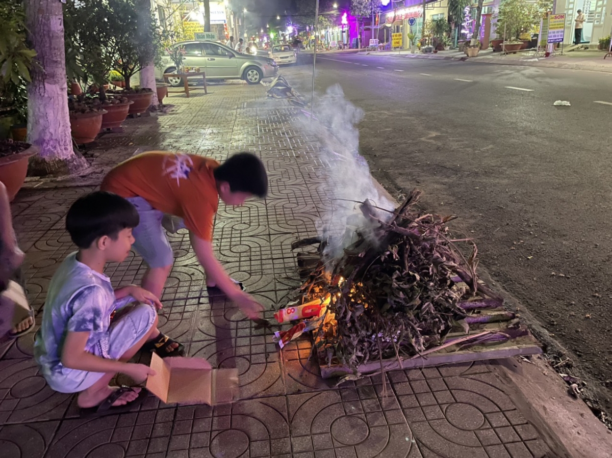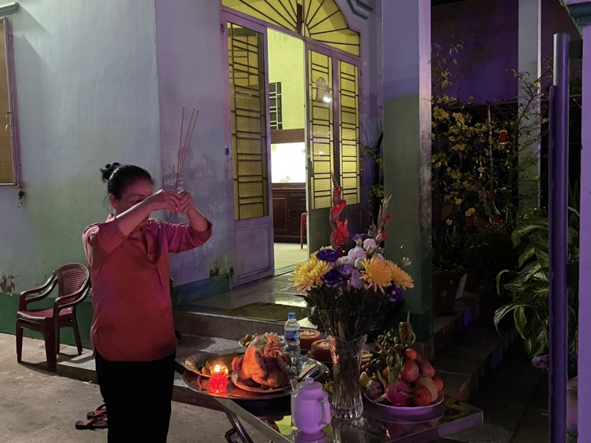 Theo phóng viên Minh Hạnh, tại huyện Vĩnh Hưng, tỉnh Long An, đúng thời khắc chuyển giao sang năm mới, những đống lửa đã được đồng loạt thắp lên. Tất cả cầu mong một năm mới ấm áp, bình an và hạnh phúc. Theo phong tục của vùng này, mâm bánh trái cúng giao thừa luôn có trái dừa với mong muốn cả một năm mát mẻ, ngọt ngào. Cúng trời đất xong, trái dừa được chia đều cho các thành viên trong gia đình cùng uống để năm mới đều may mắn (Ảnh VOV.VN).