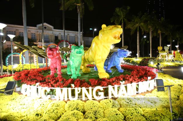 Để phục vụ người dân và du khách tham quan trong đêm giao thừa, Đà Nẵng đã xây dựng rất nhiều tiểu cảnh mừng năm mới bên 2 bờ sông Hàn. Ảnh: Diệu Bình